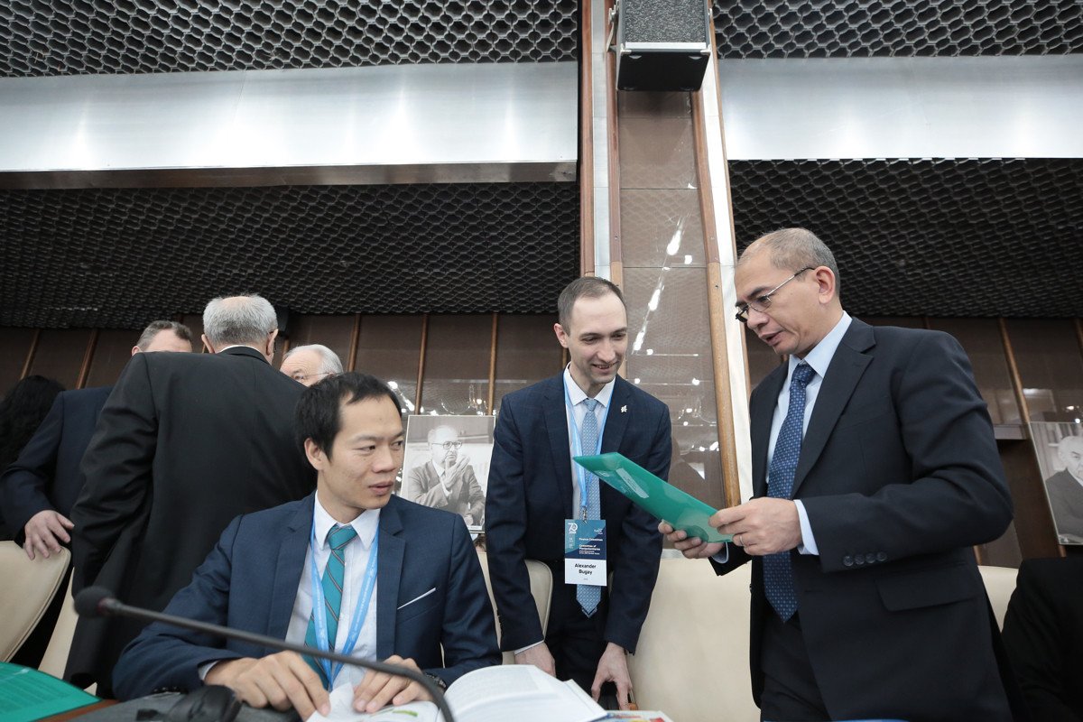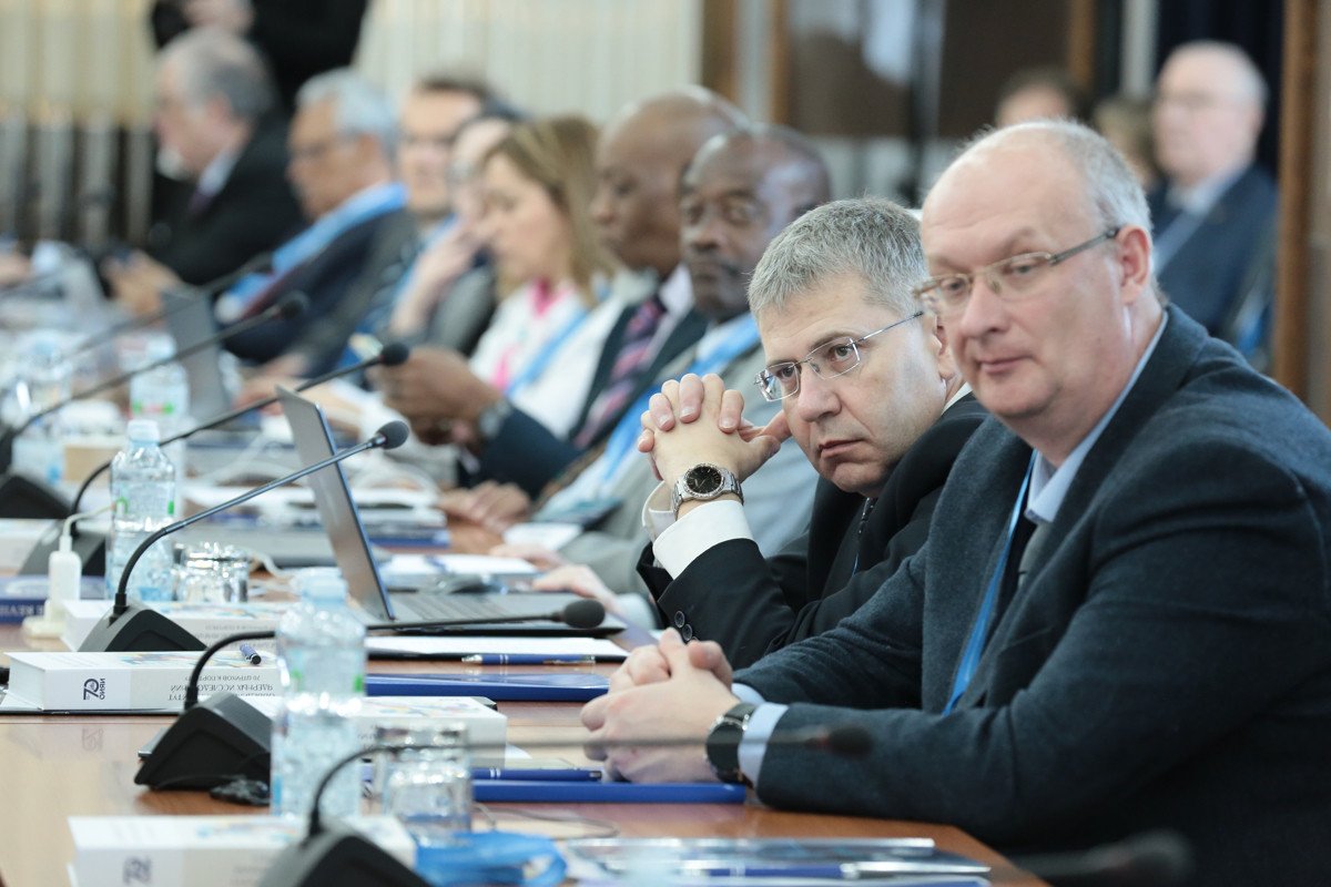 Работу сессии Комитета полномочных представителей открыл доклад директора ОИЯИ Г.В. Трубникова о деятельности Объединенного института. Он представил обзор ключевых достижений лабораторий ОИЯИ: активную подготовку к экспериментам по синтезу 119-го и 120-го элементов таблицы Менделеева, прогресс в разработке глубоководного нейтринного телескопа Baikal-GVD и медицинского сверхпроводящего циклотрона MSC-230, значимые результаты в исследованиях в области теории атомного ядра и теории фундаментальных взаимодействий и другие.