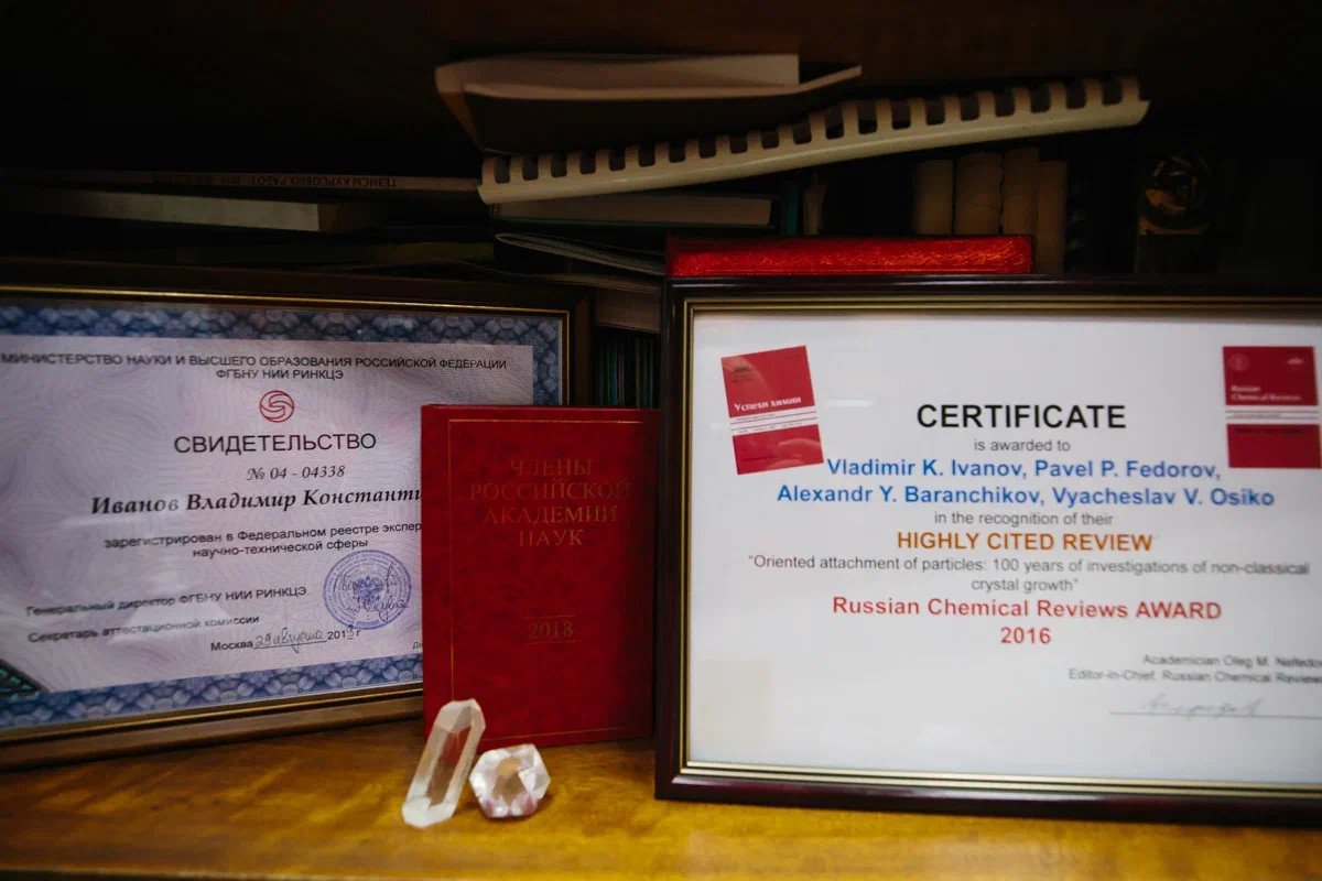 Владимир Константинович Иванов — российский ученый-химик, доктор химических наук, академик РАН. Сфера научных интересов — развитие фундаментальных основ получения функциональных материалов. Соавтор более 500 научных статей, восьми монографий и 20 патентов РФ. Председатель комиссии РАН по популяризации науки. При участии В.К. Иванова созданы принципиально новые функциональные материалы на основе редокс-активных оксидов переходных и редкоземельных элементов для терапии и диагностики (тераностики) социально значимых заболеваний; предложены новые подходы к реализации золь-гель-технологий; созданы новые оксидные материалы — перспективные компоненты электрореологических жидкостей и эластомеров для электроуправляемых механических устройств и др.