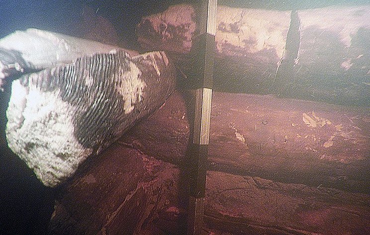 На фото: Ряж (городня). Подводная фотографии экспедиции 2018 года. Фото © Институт археологии РАН