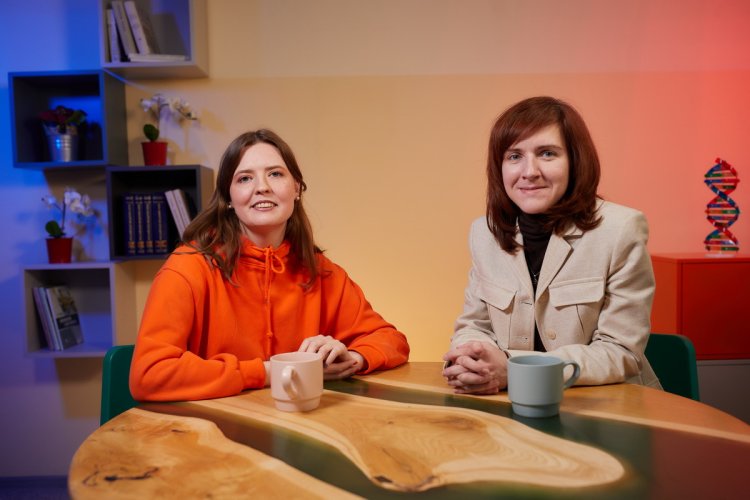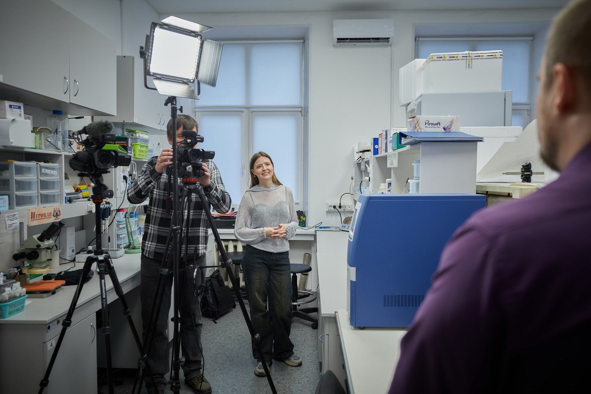 В 2025 г. был опубликован первый выпуск подкаста «В мире науки». Его героиней стала биолог Екатерина Храмеева (справа). Фото: Елена Либрик / «Научная Россия»