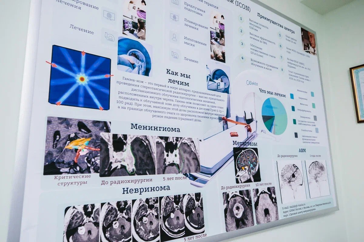 — С точки зрения того, чтобы прийти с костылями, а выйти здоровым, — нет. Не так. Мы говорим об излечении с точки зрения болезни. Но мы редко приходим к тому, чтобы тяжелый больной выздоровел. Хотя и это происходит. Особенно это касается онкологических заболеваний. Очень многие метастазы исчезают после лечения, а доброкачественные опухоли часто не развиваются дальше. Даже больших размеров — менингиомы, аденомы, невриномы чаще уменьшаются. А злокачественные опухоли, метастазы под влиянием нашего воздействия или уменьшаются, или исчезают совсем. При этом пациенты, как правило, хорошо себя чувствуют. Если больных с раком мы правильно наблюдаем и вовремя проводим диагностические исследования, они к нам приходят, пока еще очаги небольшие и не проявляются, у них высокий шанс излечиться с точки зрения контроля этих очагов. Мы не излечиваем рак в целом, это не наша задача. Но отдельные метастазы, в частности в головном мозге, — это то, чем мы сейчас успешно занимаемся.
