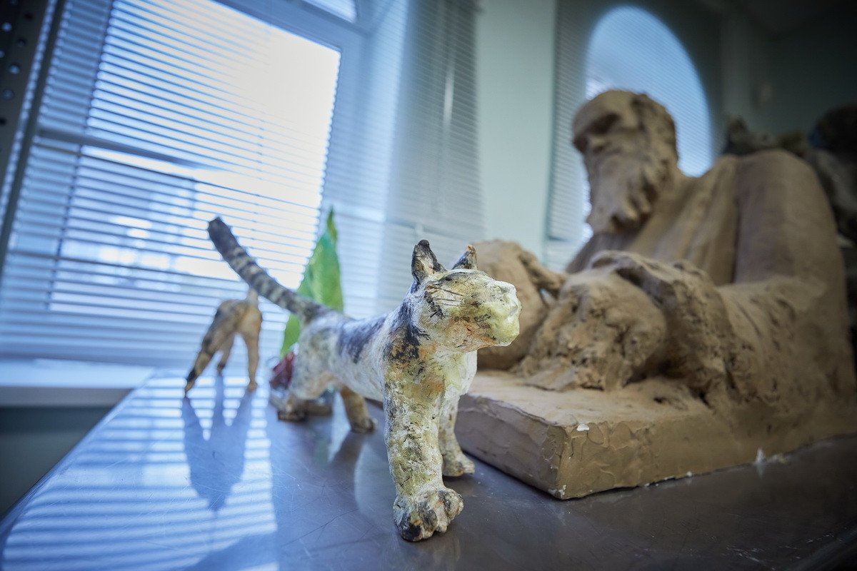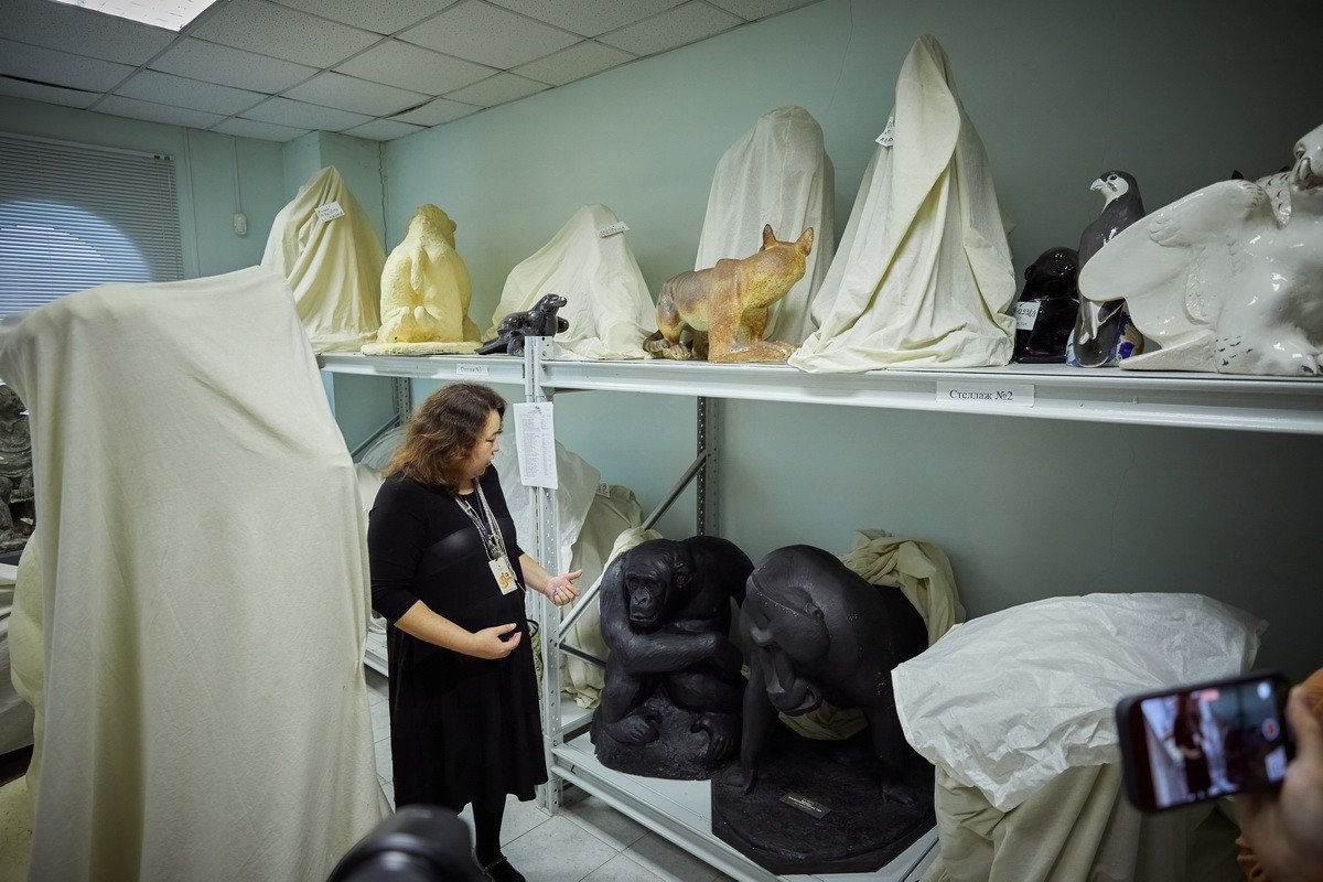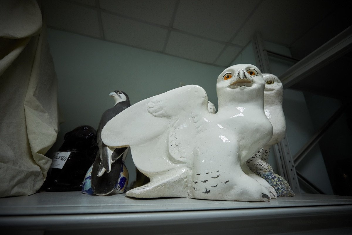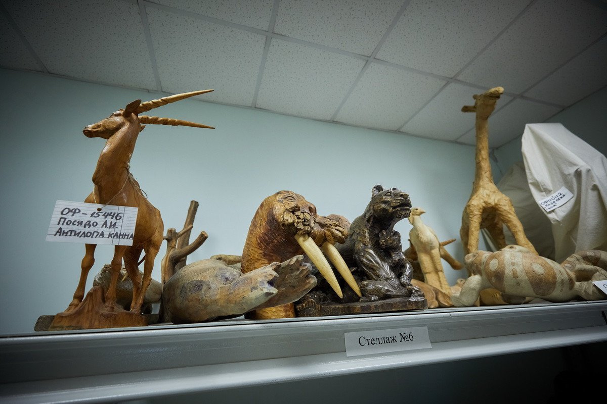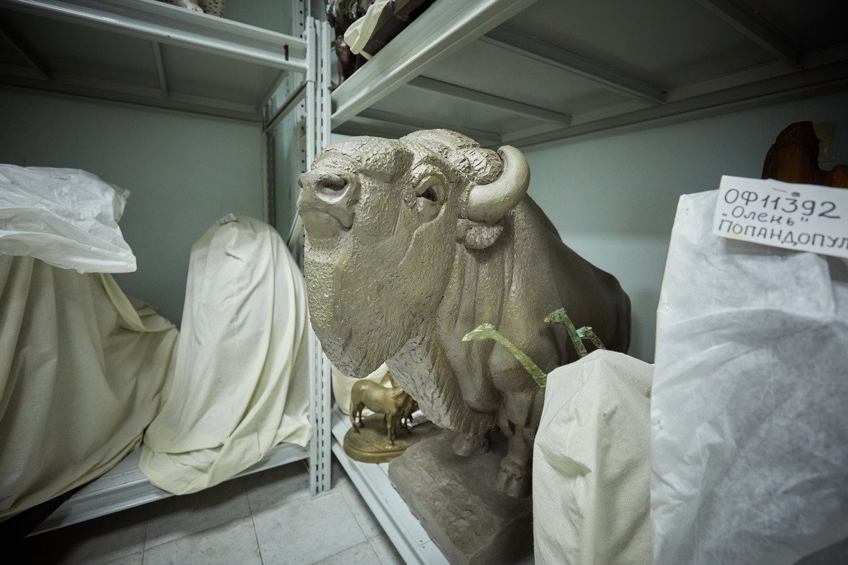 Следующим пунктом назначения стал фонд анималистической скульптуры, находящийся в «закулисье» музея. Дело в том, что отец-основатель Дарвиновского музея Александр Федорович Котс с самого начала решил, что его коллекция, то есть экспозиция, также будет дополнена произведениями искусства — теми, которые он сам заказывал у своих друзей-художников. В первую очередь — у Василия Алексеевича Ватагина, скульптуры которого и хранятся в фонде.