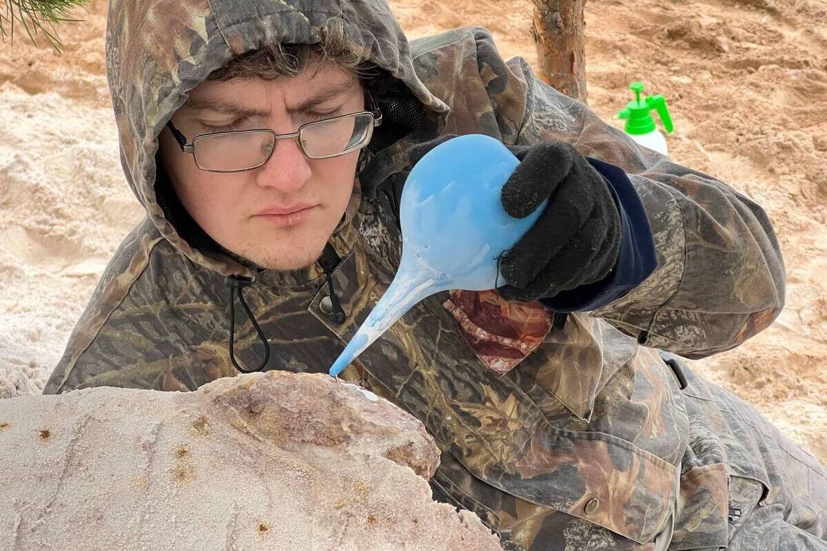 «Изначально мы думали, что нашли гигантский прототаксит, самый крупный в Ленобласти. Но когда мы начали его копать, то обнаружили корни. А у прототакситов, как известно, корней не бывает. И мы поняли, что это пень», — рассказал Дмитрий Григорьев.