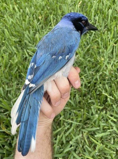 Будучи аспирантом, изучающим зелёных соек в Техасе, Стоукс имел привычку следить за несколькими сайтами в социальных сетях, где орнитологи делятся фотографиями увиденных птиц. Это был один из нескольких способов, с помощью которых он находил птиц, чтобы отловить их, взять образцы крови для генетического анализа и выпустить в дикую природу. Однажды ученый увидел фотографию странной синей птицы с чёрной маской и белой грудкой, которую опубликовала женщина из пригорода к северо-востоку от Сан-Антонио. Птица была похожа на синюю сойку, но явно отличалась от неё. Любительница птиц пригласила Стоукса к себе домой, чтобы он увидел всё своими глазами.