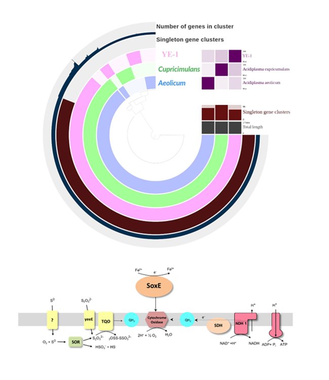 Микробиологи выяснили, что голубой медьсодержащий белок сульфоцианин участвует в окислении и серы, и железа. В присутствии пирита Acidiplasma производит меньше сульфоцианина, из-за чего окисление железа проходит медленно. При этом к окислению серы также подключаются оксигеназа/редуктаза серы и тиосульфат-хинон оксидоредуктаза.