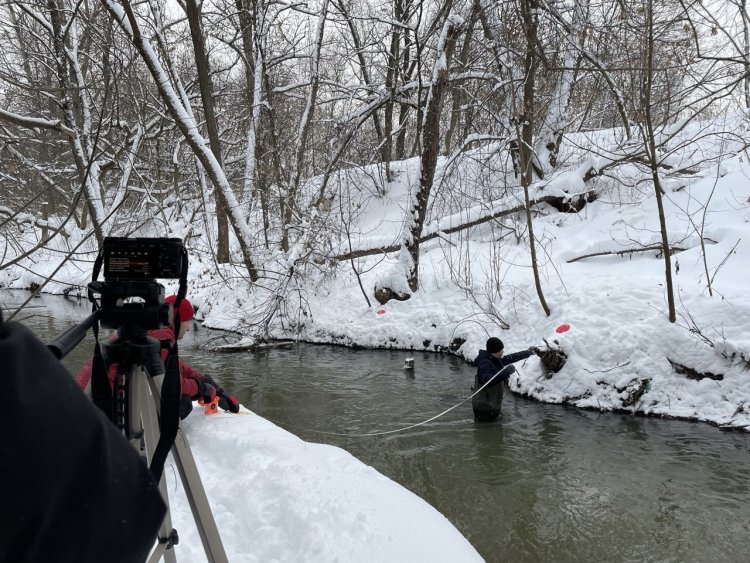 Проведение гидрологических исследований в русле реки Сетунь. Фото предоставлено Ириной Денисовой