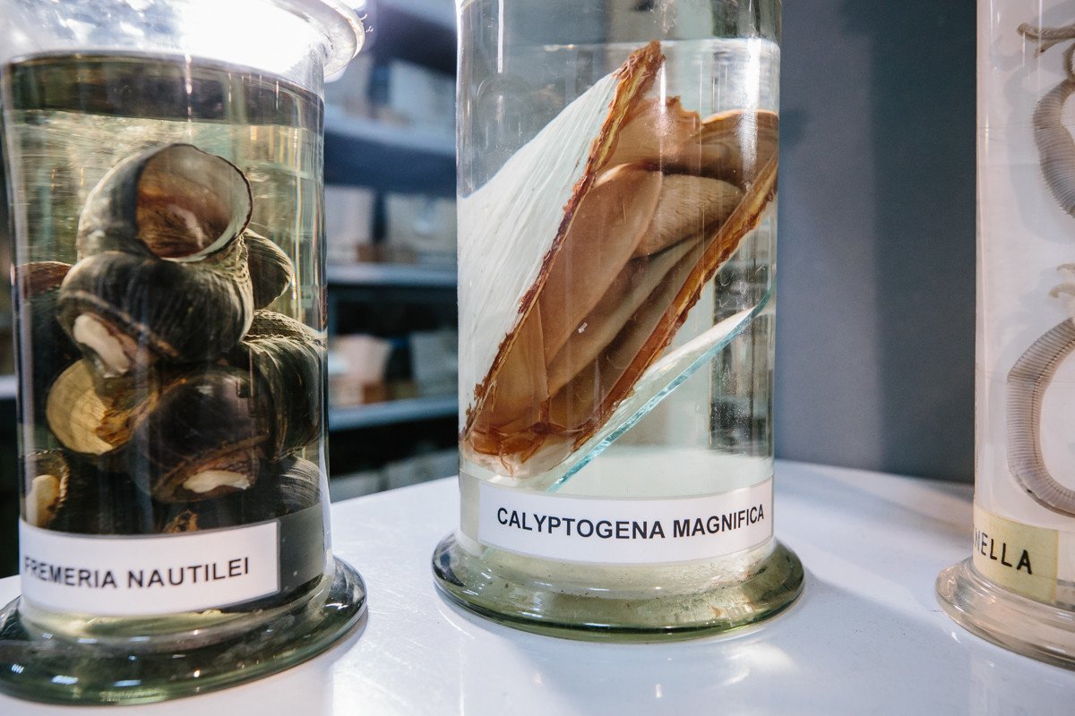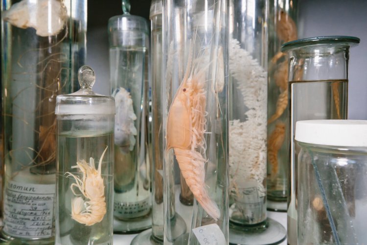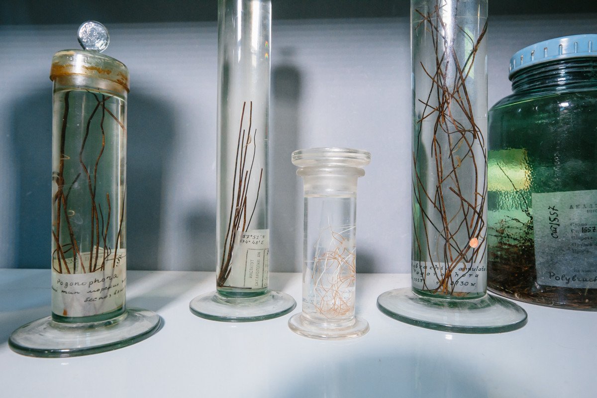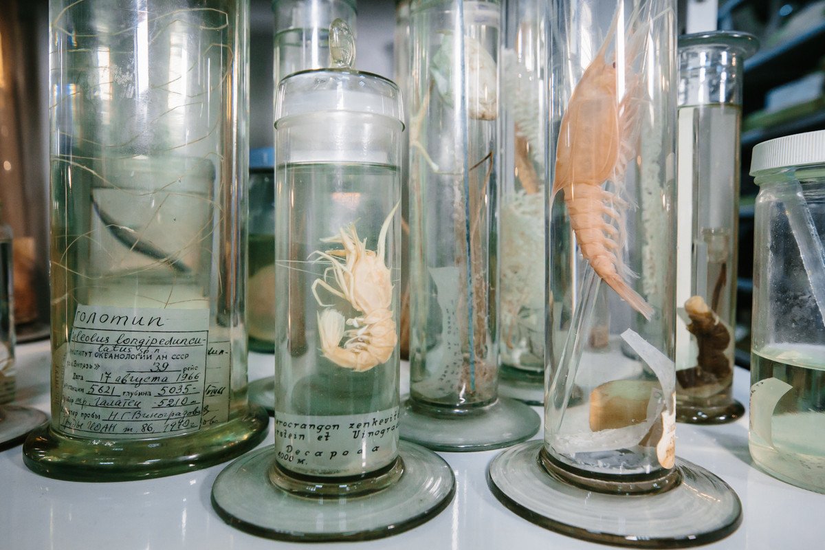 Фауна с глубины 9 км (Курило-Камчатский желоб), собранная с помощью трала в 1953 г. в ходе экспедиции легендарного судна «Витязь» (Институт океанологии). Состав фауны указывает на прохождение трала через поле метановых выходов. Фото: Ольга Мерзлякова / «Научная Россия»