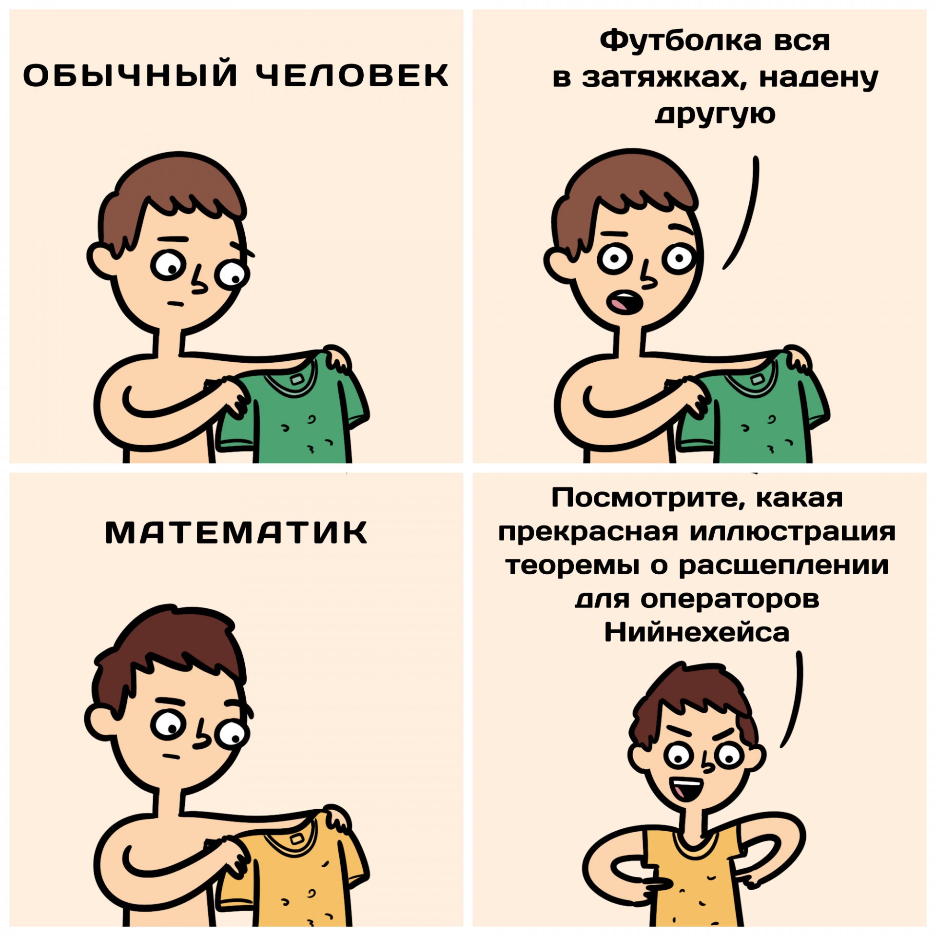 Представьте себе обычную материю: кусочек скатерти или полотенце. Оно состоит из переплетенных нитей. Часть нитей идет, условно, слева направо, а часть – сверху вниз. Если скатерть повидала виды, то на ней есть зацепки, стяжки. Двумерное пространство с оператором Нийнехейса представляет собой что-то похожее – через каждую точку протянуты нити. В этом смысле теорема о расщеплении говорит, как локально устроено плетение нашей «скатерти», а изучение особых точек (теорема о линеаризации) – какие бывают простейшие узелки и зацепки.