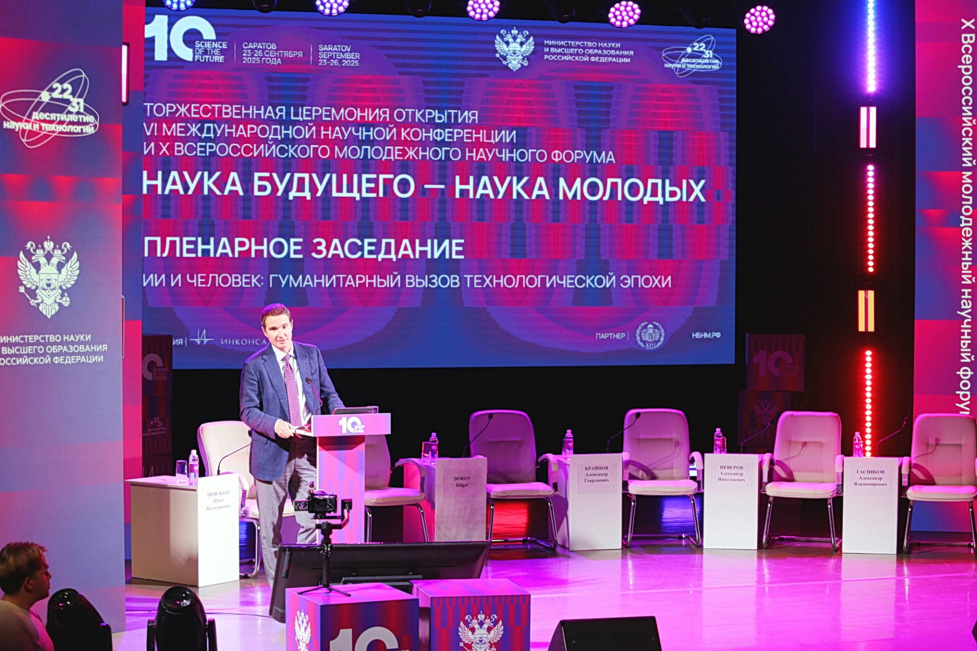 «Присутствие на форуме учёных такого масштаба — это уникальная возможность для молодежи прикоснуться к передовому опыту, включиться в международные исследовательские команды и получить ценные рекомендации от признанных авторитетов. Форум “Наука будущего – наука молодых” — это не просто конференция, это живая лаборатория будущего. Здесь формируются новые научные направления, рождаются междисциплинарные коллаборации, а молодые таланты получают поддержку, необходимую для реализации своих идей», ― зачитала приветствие А.А. Фурсенко заместитель начальника Управления Президента РФ по научно-образовательной политике Елена Нечаева.