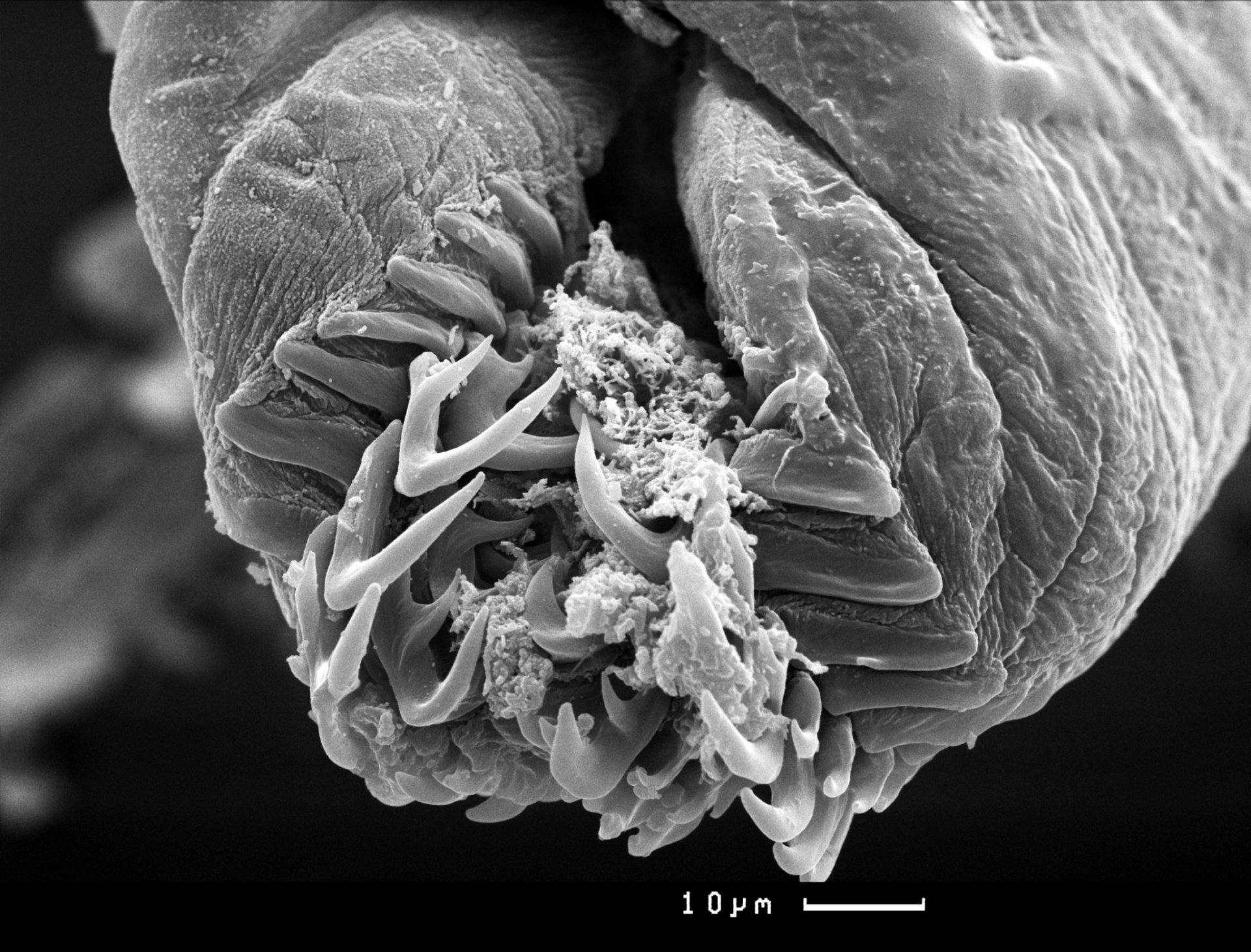 Иллюстрация: Микрофотография радулы Vayssierea cf. elegans в рабочей зоне, полученная с помощью сканирующего электронного микроскопа // Источник: Анна Михлина