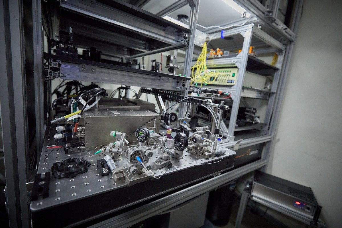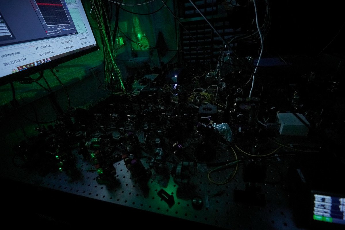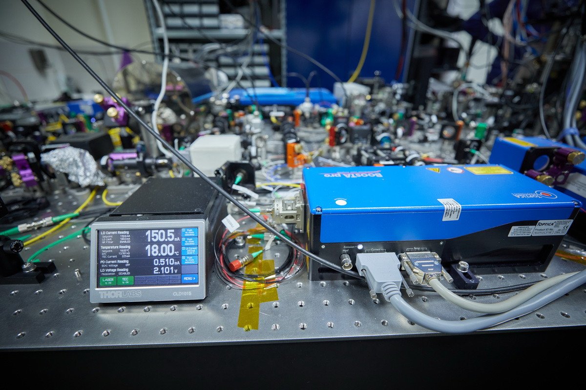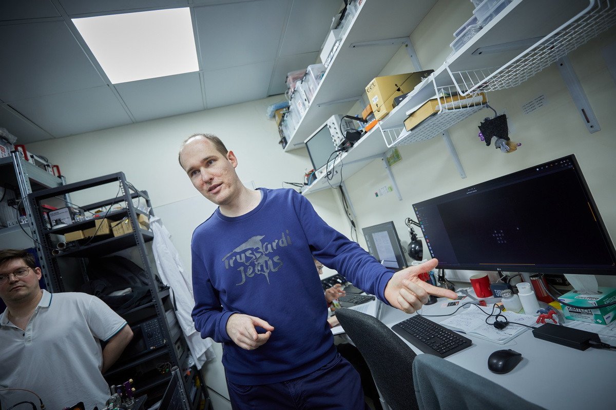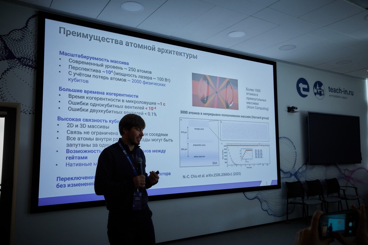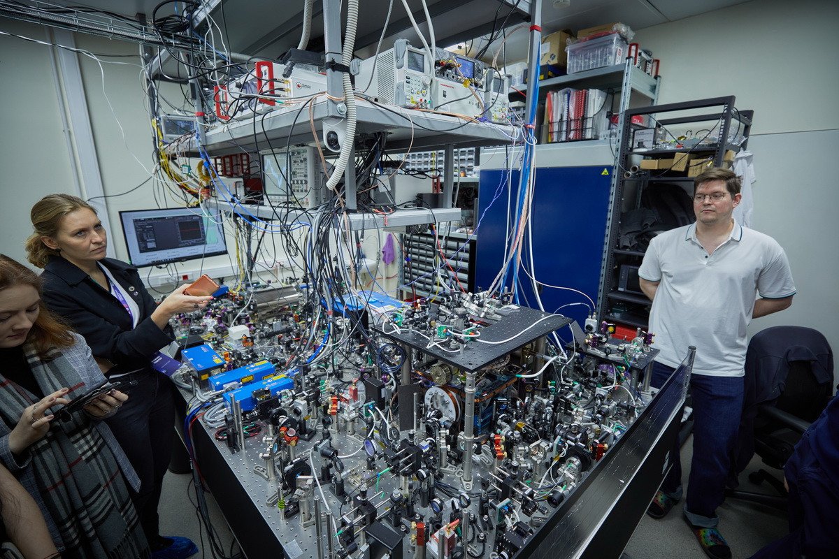 Гости из СМИ побывали в лабораториях Центра квантовых технологий МГУ, где располагаются квантовые вычислители. Первый — компьютер на нейтральных атомах рубидия — в декабре 2025 г. достиг размерности в 72 кубита. Во время контрольного эксперимента точность двухкубитной операции, проделанной с помощью этого компьютера, составила около 94%. Помимо него, рубежа в 70 кубитов в России пока достигли только две установки — уже упомянутый квантовый вычислитель на ионах иттербия в ФИАН и компьютер на ионах кальция в Российском квантовом центре.
