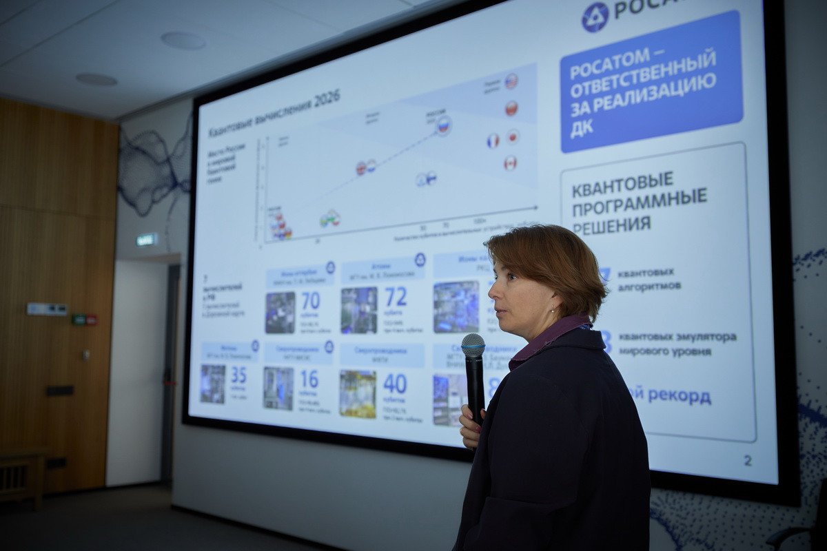 Новостями Квантового проекта поделилась директор по квантовым технологиям госкорпорации «Росатом», кандидат физико-математических наук Екатерина Борисовна Солнцева. Сейчас в стране развиваются семь квантовых вычислителей на четырех наиболее перспективных платформах — атомной, ионной, фотонной и сверхпроводниковой (в рамках дорожной карты — пять из них). В их числе — два компьютера, расположенные в Центре квантовых технологий МГУ. Помимо России, на всех четырех платформах квантовые вычислители развивают только США и Китай.