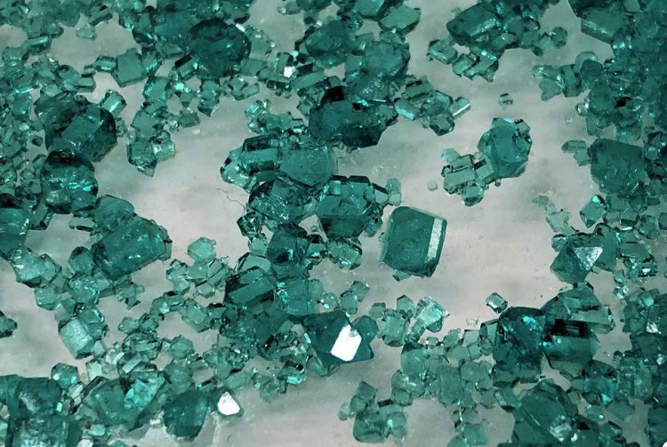 Кристаллы синтетического буссенготита — аналога минерала, найденного в метеорите Orgueil. Предоставлено профессором СПбГУ Сергеем Бритвиным (кафедра кристаллографии)