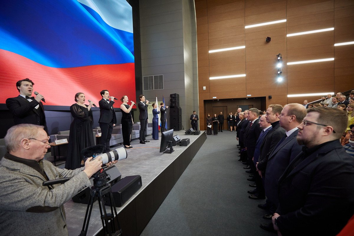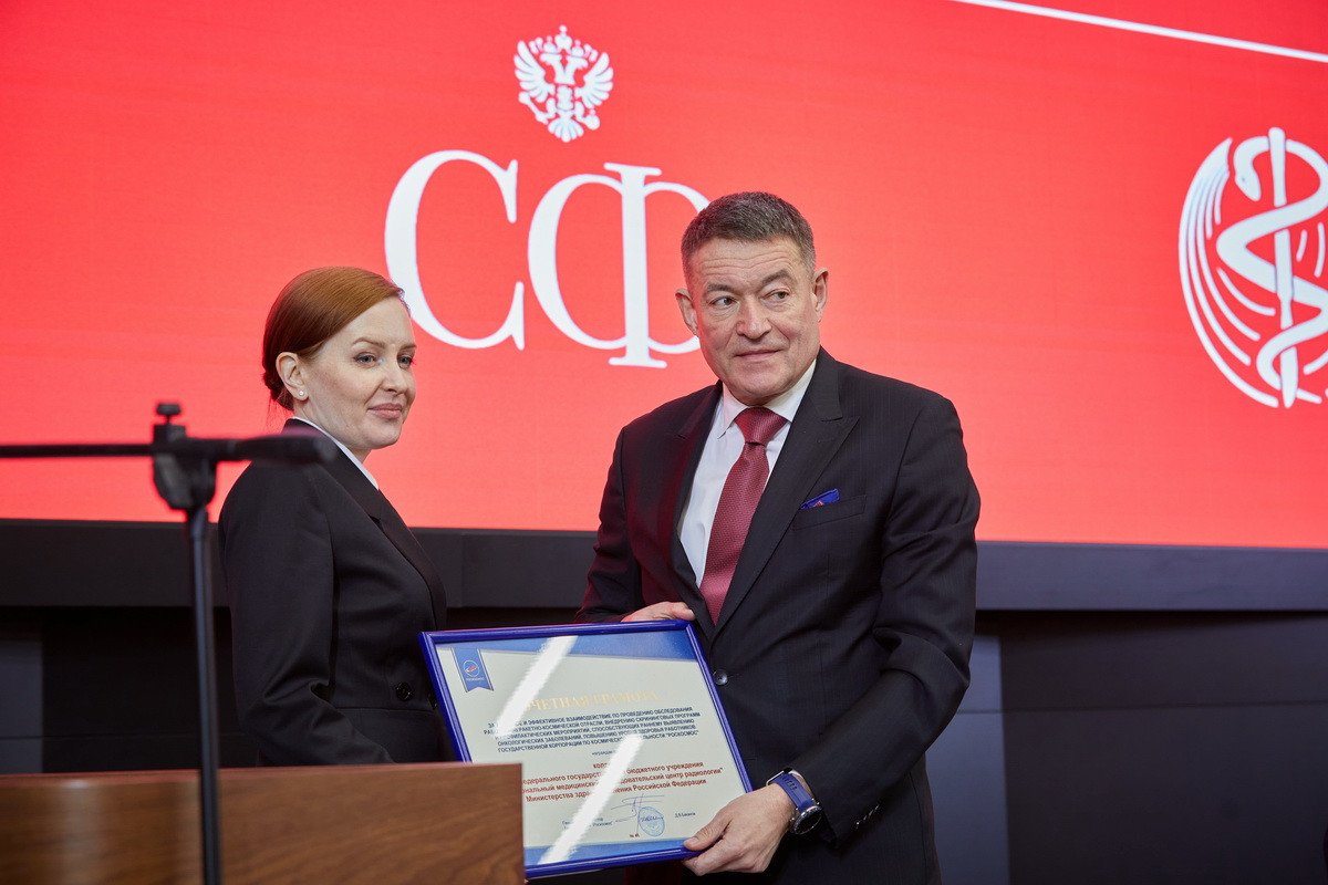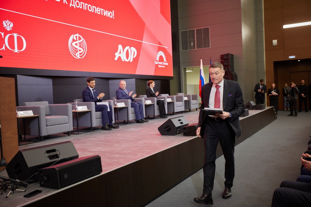 Мероприятие началось с приветствия президента РФ Владимира Владимировича Путина, которое зачитал главный онколог Минздрава России академик Андрей Дмитриевич Каприн:
