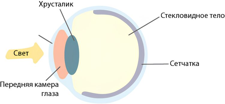 Простая схема строения глаза человека. Иллюстрация: Эльмира Якупова / портал «Биомолекула»