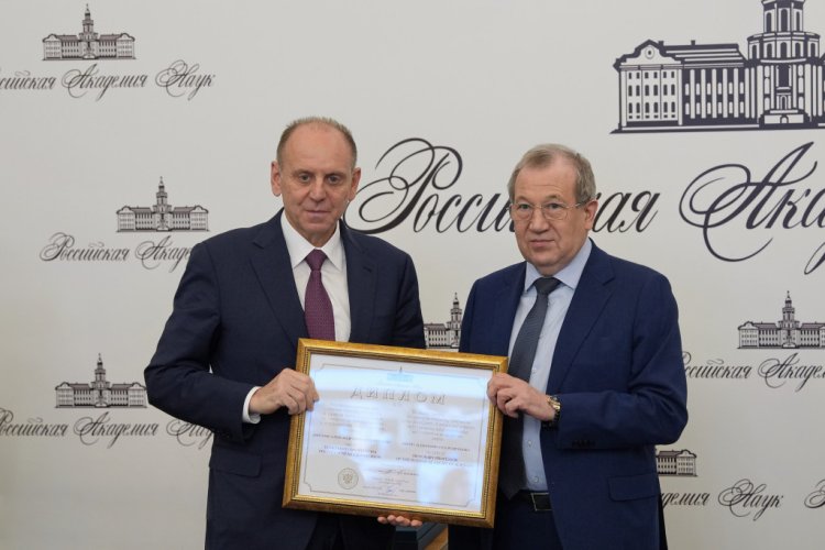 Также на заседании состоялось вручение диплома и нагрудного знака «Почётный профессор РАН» Дмитрию Пумпянскому, специалисту в области металловедения, технологий металлургического производства, создания сталей и титановых сплавов специального назначения.