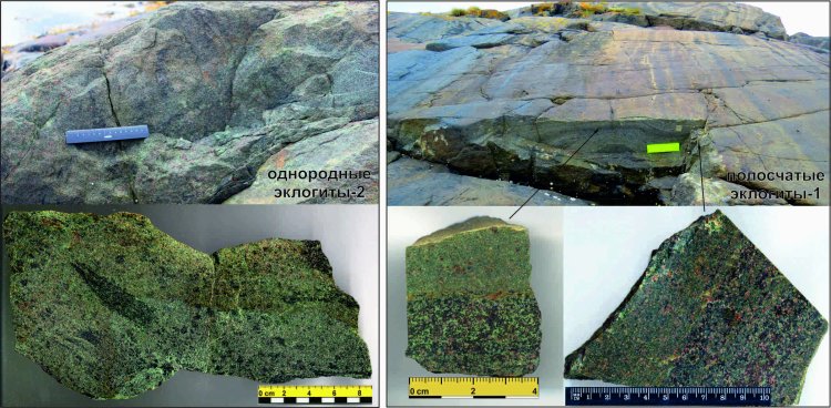 Эклогиты – это редкие горные породы, образованные при высоком давлении и относительно низкой температуре на глубинах более 50 километров. Такие условия возникают в зонах субдукции, то есть там, где одна тектоническая плита погружается под другую. Как правило, это сопровождается активным вулканизмом и землетрясениями, как, например, недавние извержения и толчки на Камчатке. Кроме этих зримых и ощущаемых всеми геологических процессов происходят и незаметные сразу: океанические породы, погрузившись сначала на большую глубину и превратившись в эклогиты, как по конвейерной ленте, возвращаются к поверхности. Сегодня их можно обнаружить в разных точках земного шара. Чаще в горных системах, например, в Гималаях, на Урале, встречаются относительно молодые эклогиты, которым несколько десятков или сотен миллионов лет. Более древние, возрастом до 2 млрд лет, известны в Шотландии и Танзании. Эклогиты еще древнее – большая редкость в мире, такие породы обнаружены и описаны в конце XX века карельским ученым-геологом Олегом Володичевым в районе села Гридино на побережье Белого моря. Заявление ученых о том, что возраст беломорских эклогитов может составлять 2,7 млрд лет, стало сенсацией в научных кругах.