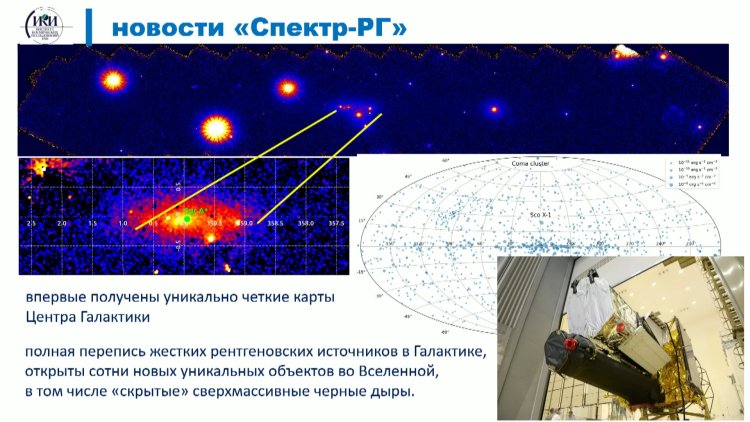 Ученый также рассказал о национальном проекте «Космос» и отечественной флагманской миссии — космической обсерватории «Спектр-РГ», группировке спутников «Ионосфера-М» для мониторинга земной ионосферы и космической погоды и других отечественных космических проектах.