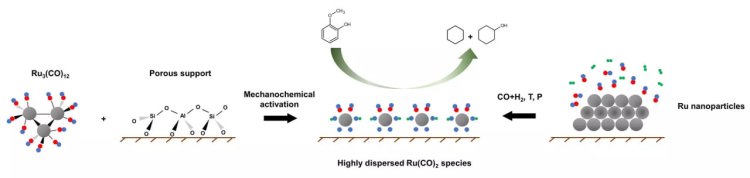Обычно рутений наносят на пористый носитель методом пропитки растворами солей. Однако частицы металла при этом склонны слипаться и концентрироваться на поверхности, что быстро снижает их активность.