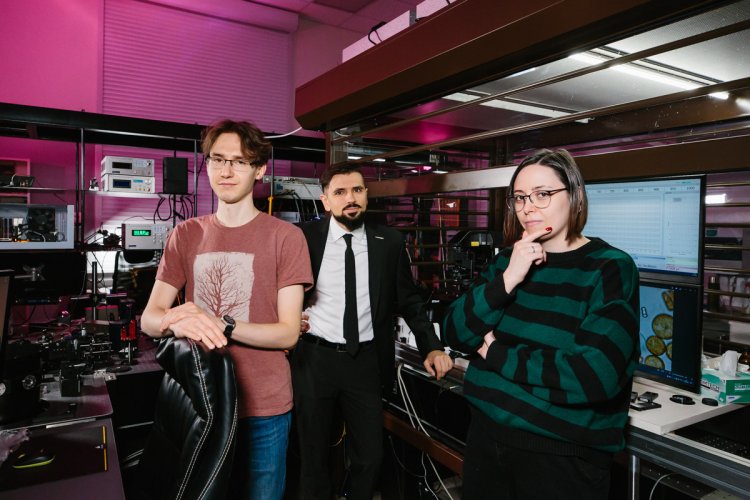 Сотрудники лаборатории физико-химии биомембран биологического факультета МГУ. Слева направо: Иван Прохоров, Евгений Максимов, Светлана Сидоренко. Фото: Ольга Мерзлякова / «Научная Россия»