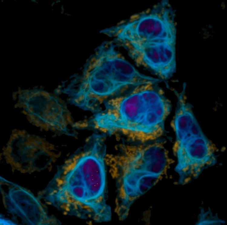 Пример FLIM-изображения человеческих раковых клеток HeLa, экспрессирующих варианты белков FAST с локализациями в различных органоидах. Изображение: Евгений Максимов / МГУ