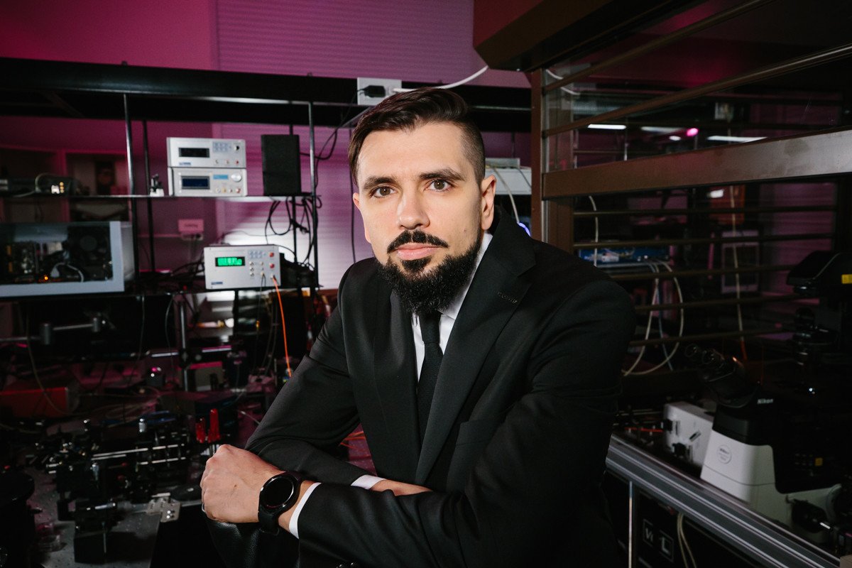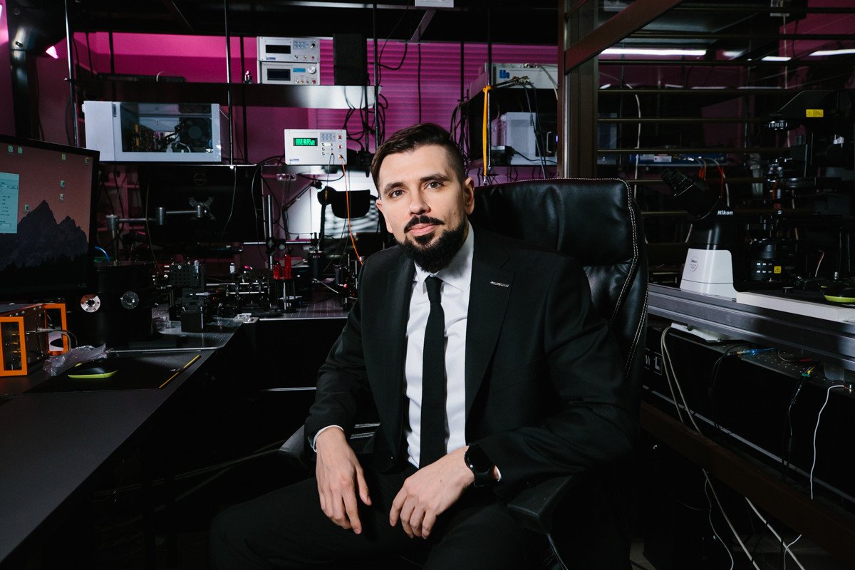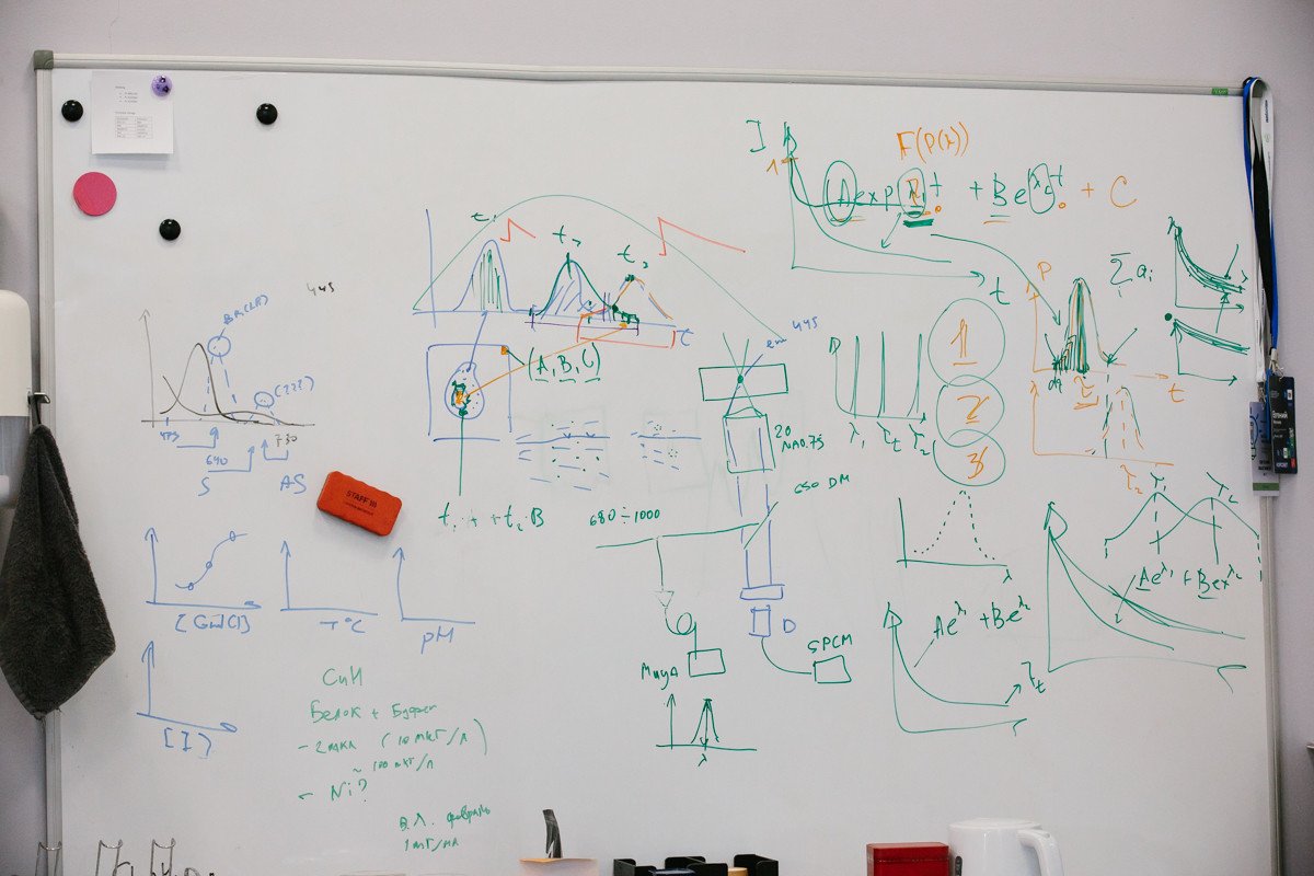 Сотрудники лаборатории создали уникальную установку на основе фемтосекундного лазера и детекторов единичных фотонов, позволяющую измерять кинетику затухания флуоресценции и получать изображения (Fluorescence Lifetime Imaging Microscopy, FLIM). Видео: Александр Козлов / «Научная Россия»