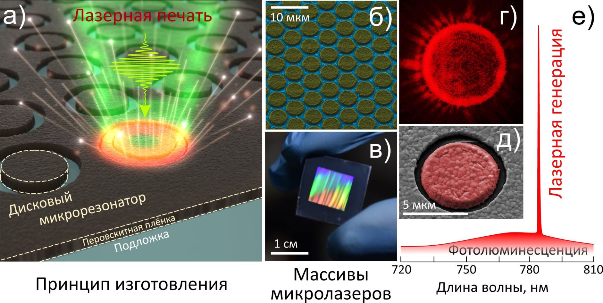 "Используя ультракороткие лазерные импульсы, ученые напечатали оптические микродисковые лазеры в тонких перовскитных плёнках на стеклянной подложке. Полученные перовскитные лазеры могут применяться в компьютерах будущего и шире - обеспечивать работу фотонных схем в устройствах сверхбыстрой обработки информации", - рассказали в университете.