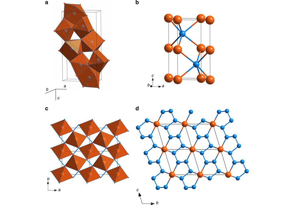 Иллюстрация: Crystal structures of ironnitrogen compounds. Orange and blue balls show the positions of Fe and N atoms, respectively/Bykov, M., Bykova, E., Aprilis, G. et al. Fe-N system at high pressure reveals a compound featuring polymeric nitrogen chains. Nat Commun 9, 2756 (2018).