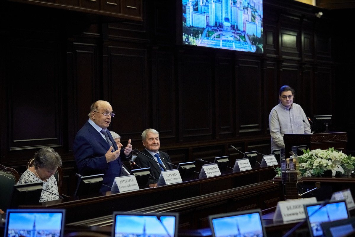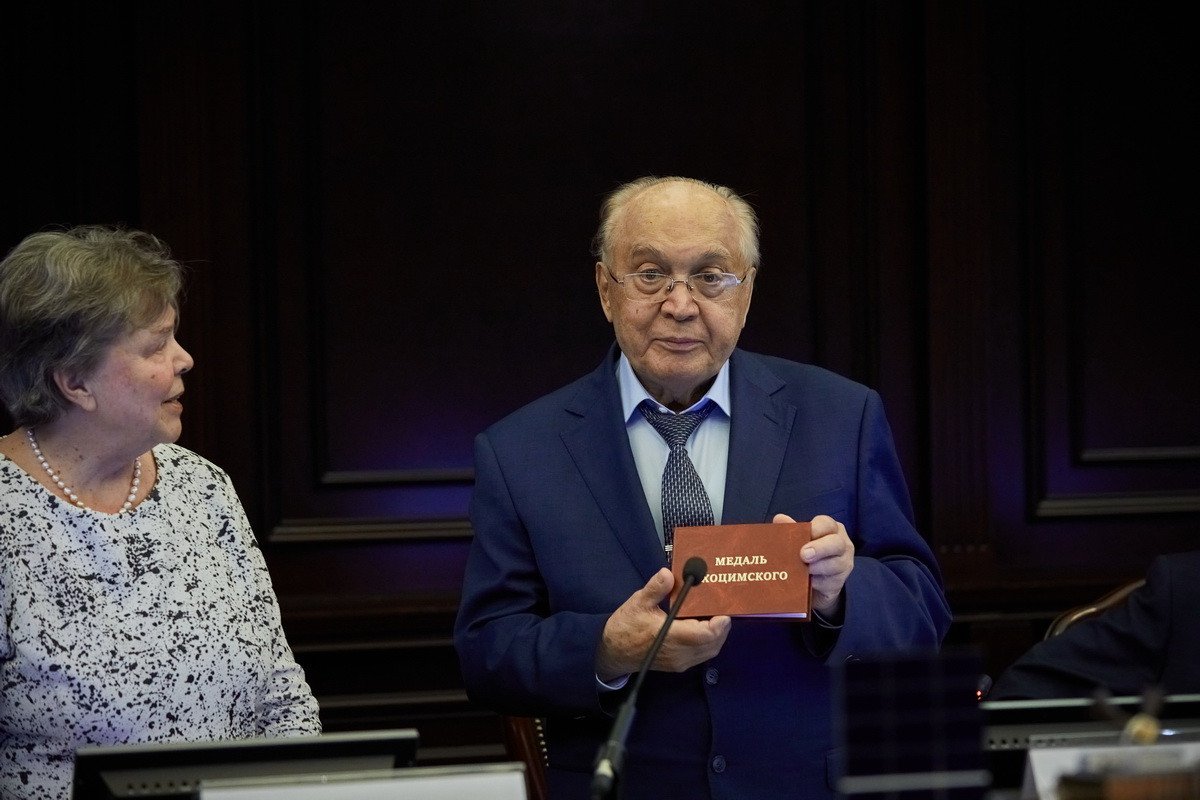 Важной частью заседания стала церемония вручения медали имени Дмитрия Евгеньевича Охоцимского. Награда, учрежденная Российским национальным комитетом по теоретической и прикладной механике совместно с Институтом прикладной математики им. М.В. Келдыша, была присуждена ректору МГУ В.А. Садовничему за разработку программы математического обеспечения управления космическими полетами. Председатель Национального комитета по теоретической и прикладной механике И.Г. Горячева, вручая награду, отметила, что медаль вручается лишь в третий раз и это событие подчеркивает особую роль МГУ в развитии механики космического полета.