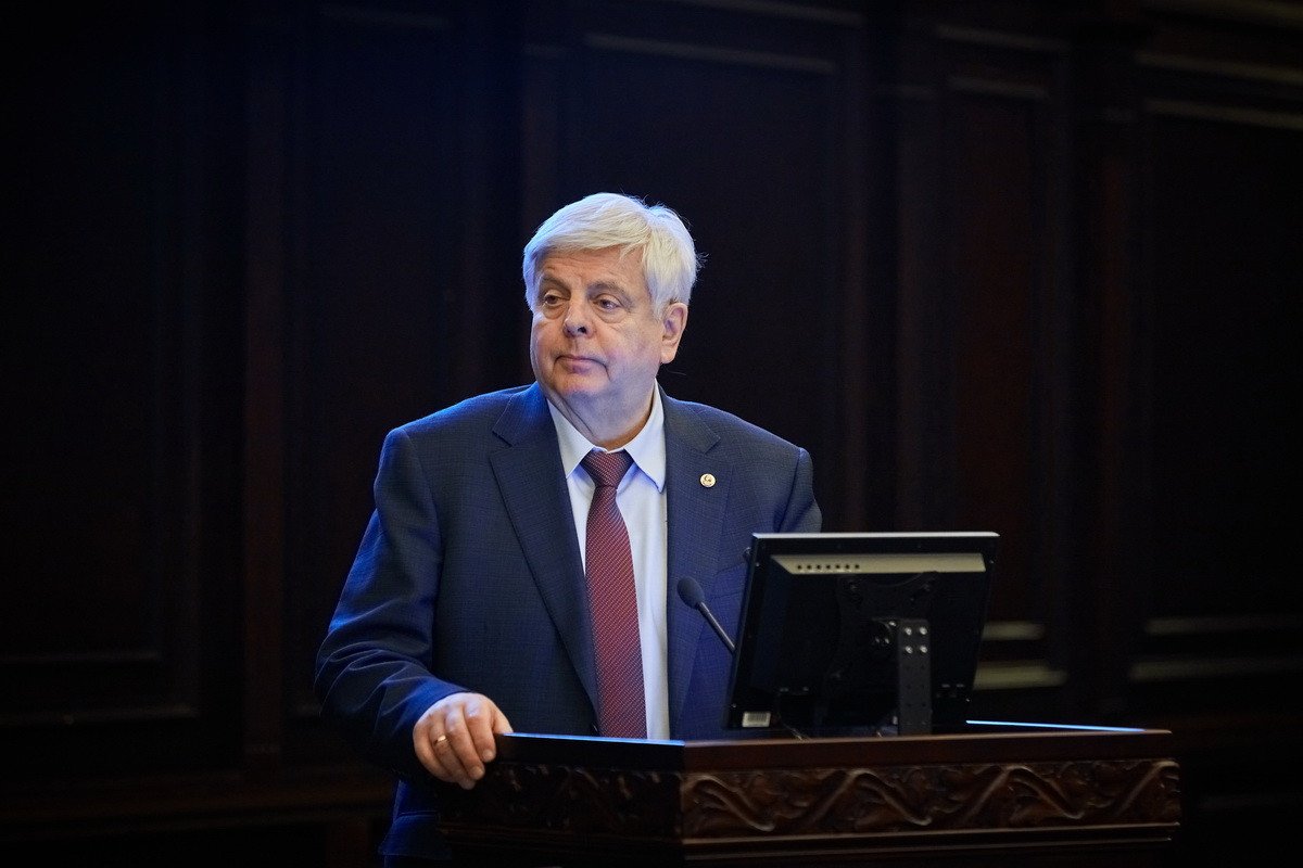 Директор НИИ ядерной физики им. Д.В. Скобельцына МГУ Э.Э. Боос представил обширную программу исследований по физике космоса, реализуемую институтом. Среди ключевых проектов — многоспутниковая группировка «Созвездие-270», эксперимент «Нуклон-2» по изучению состава космических лучей, астрофизический комплекс «Тайга» в Тункинской долине и проект по созданию космической квантовой связи. Он также подчеркнул преемственность традиций, напомнив об открытии внешнего радиационного пояса Земли группой С.Н. Вернова и А.Е. Чудакова в 1958 г.