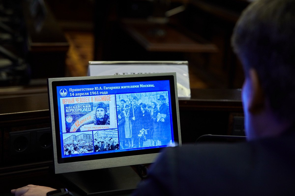 Открывая заседание, ректор МГУ академик Виктор Антонович Садовничий подчеркнул особую связь Московского университета с историей отечественной космонавтики. Он напомнил, что ученые университета стояли у истоков космической эры: первый космический эксперимент был осуществлен сотрудниками МГУ на втором искусственном спутнике Земли в ноябре 1957 г. и привел к открытию внешнего радиационного пояса Земли. Ректор привел и личное воспоминание о дне 14 апреля 1961 г., когда студенты мехмата, узнав о полете Юрия Гагарина, выбежали на Ленинский проспект приветствовать первого космонавта.
