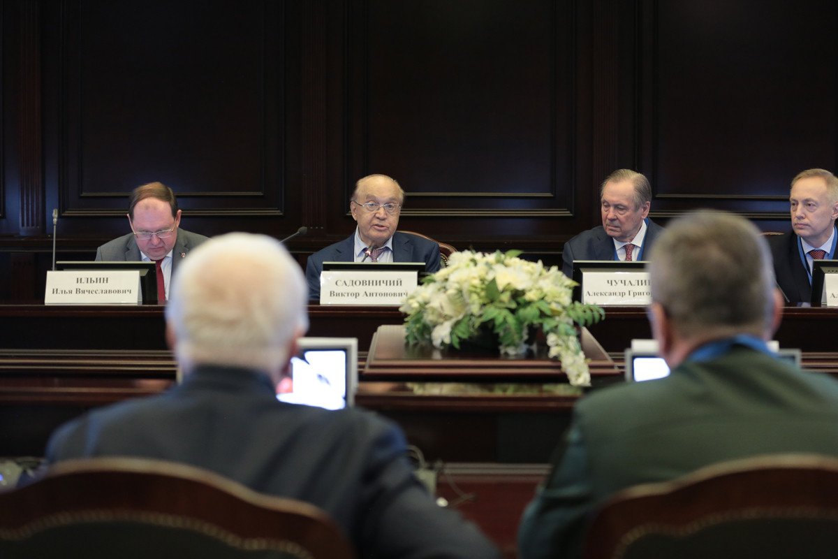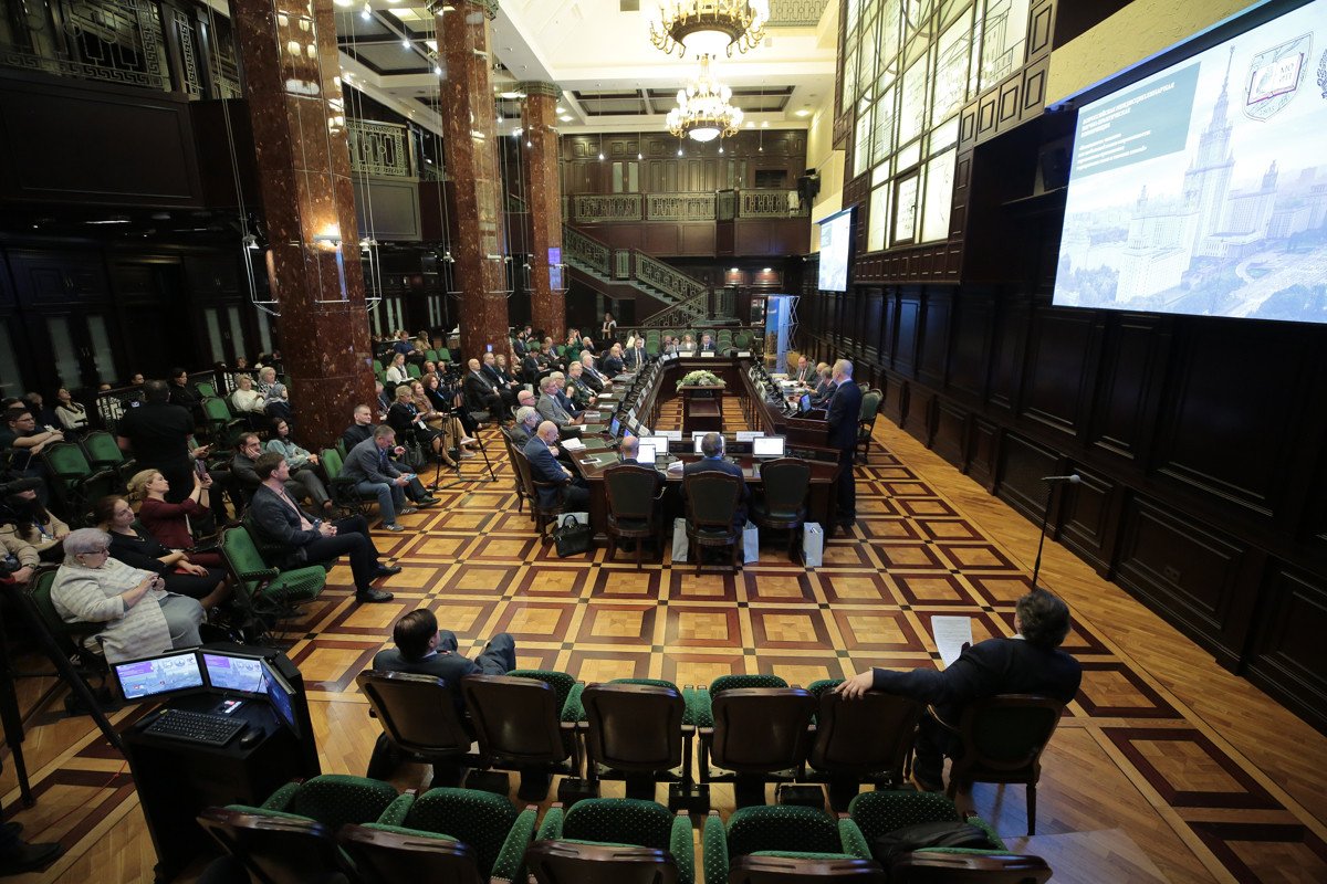 10:00 Декан факультета глобальных процессов МГУ им. М.В. Ломоносова Илья Ильин представляет участников конференции и рассказывает о ее программе. В работе конференции принимают участие 11 академиков и семь членов-корреспондентов РАН.